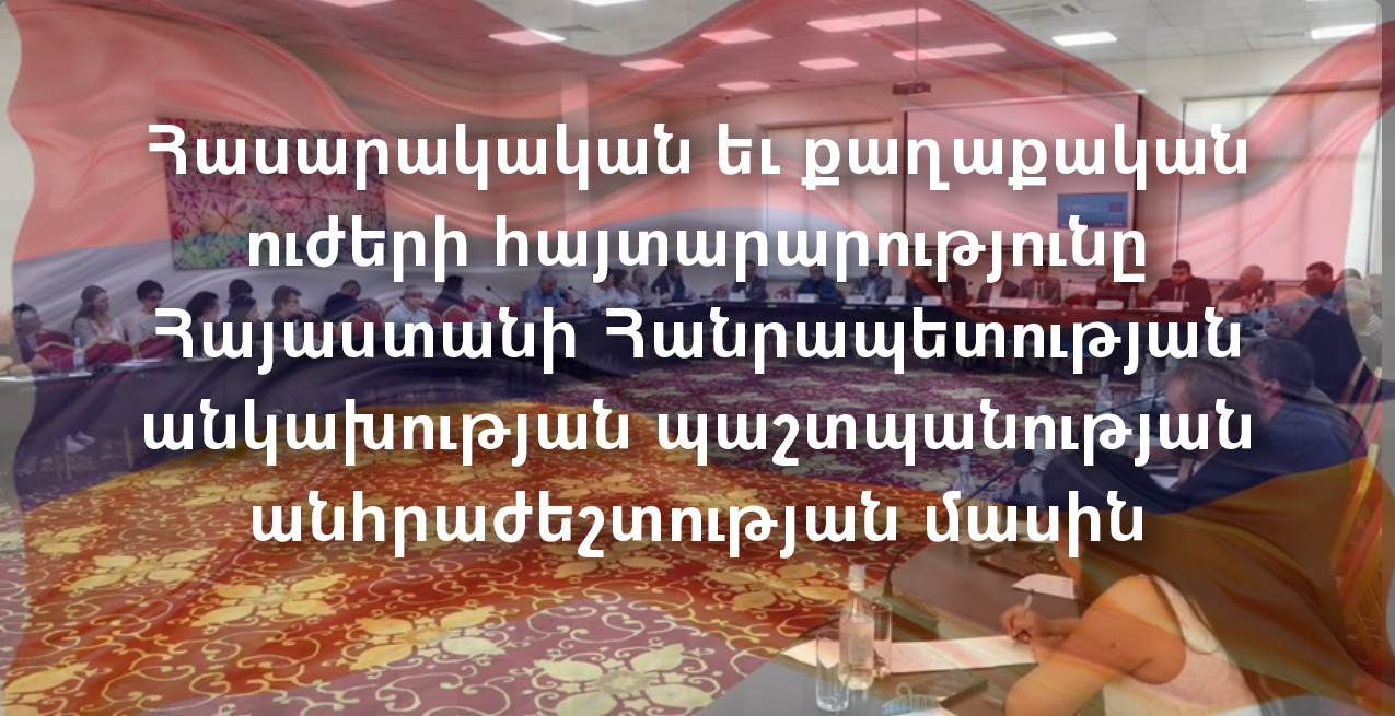 Մենք` Հայաստանի Հանրապետության հասարակական եւ քաղաքական ուժերի ներկայացուցիչներս, ազատ քաղաքացիներս լի ենք վճռականությամբ պահպանելու եւ պաշտպանելու մեր անկախ եւ ինքնիշխան պետականությունը որպես հայ ժողովրդի կերտած բարձրագույն արժեք։ Մենք դատապարտում ենք Ռուսաստանից եւ Ադրբեջանից հնչող սպառնալիքները Հայաստանի անկախության եւ տարածքային ամբողջականության հանդեպ։
